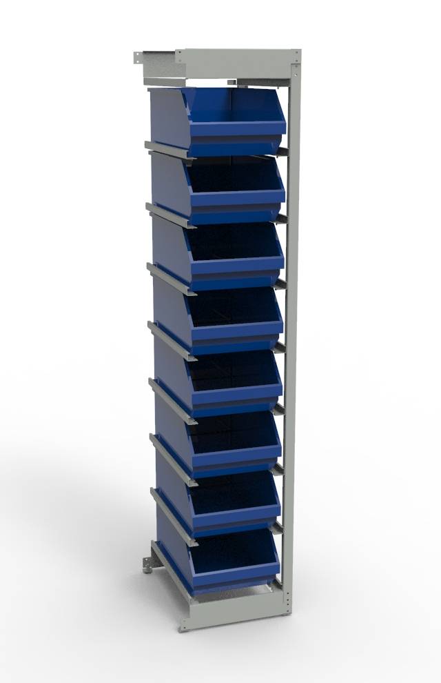 Конструкцией стеллажа предусмотрена фиксация контейнера в наклонном положении.