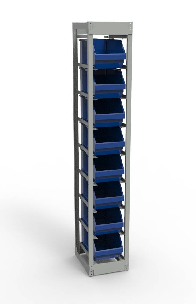 Конструкцией стеллажа предусмотрена фиксация контейнера в наклонном положении.