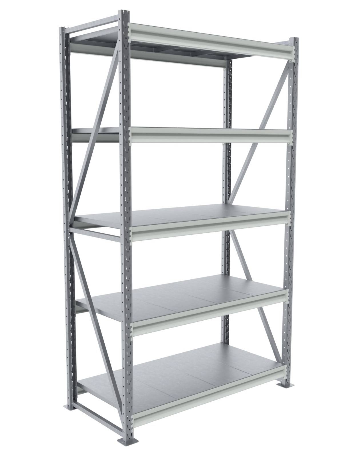 Стеллаж - СГР-77 (3000х2200х500) оцинкованный настил - универсальная металлическая модель СГР (среднегрузовые) предназначен для установки внутри помещения для хранения грузов с ручной обработкой в магазинах, на складах, автосервисах и на промышленных предприятиях. Рамы стеллажа с шириной профиля 50 мм разборные изготавливается из оцинкованной стали 1,2 мм, Z-образные балки 30х75 мм из крашенного металла RAL 7035, толщиной от 1 мм до 1,2 мм, крепятся на зацепах, настил из оцинкованного или крашенного металла RAL 7035, толщиной 0,7 мм.