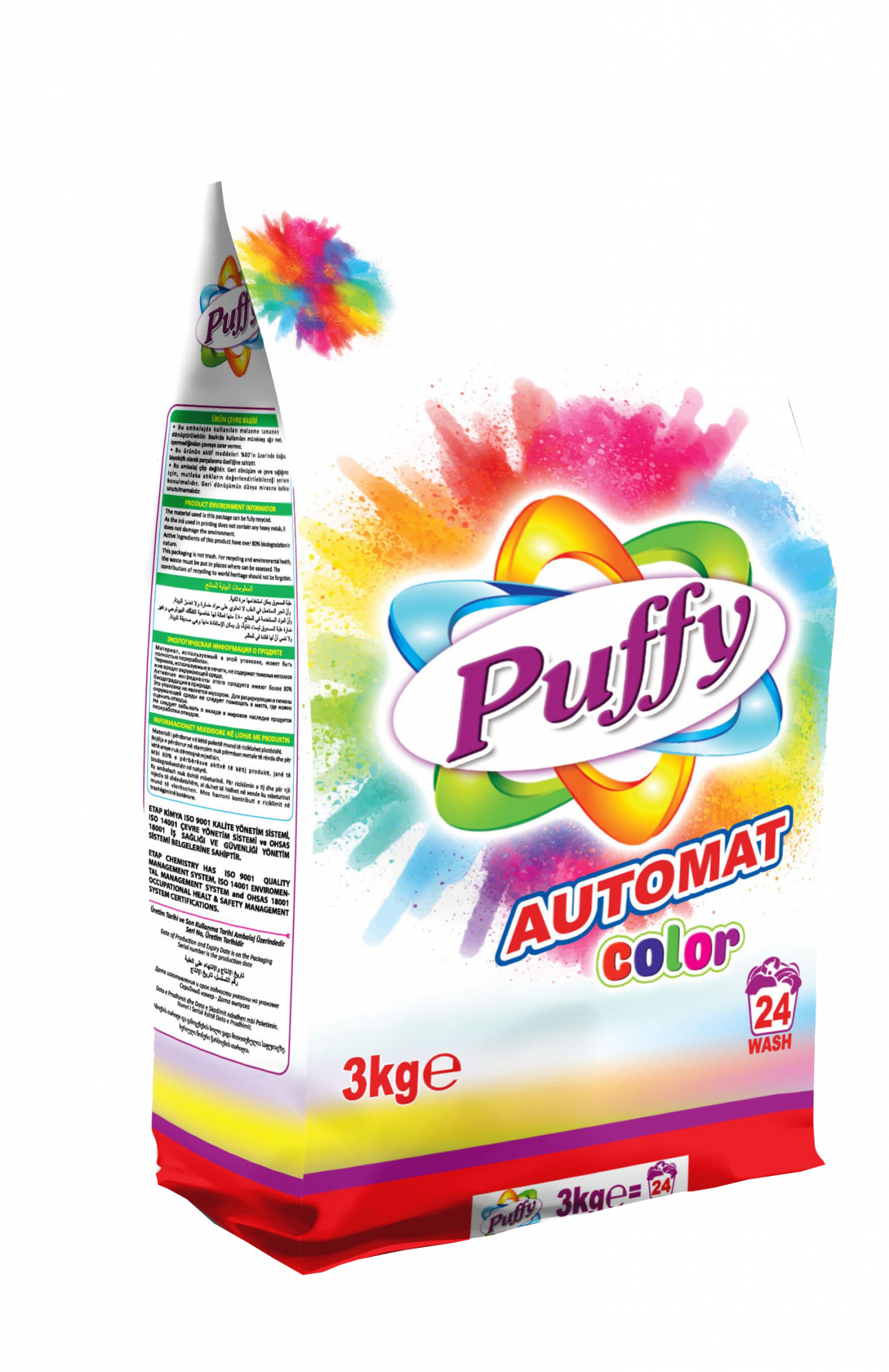 Для стирки цветного белья. Для автоматических стиральных машин. Безопасный - без фосфатов и хлорных отбеливателей. Входящие в состав средства вещества более чем на 80 % разлагаются в природной среде. Эффективный - активные вещества глубоко проникают в ткань и эффективно справляются с любыми видами загрязнений: органическими, неорганическими, застарелыми. Бережный - не разрушает структуру ткани, предотвращает оседание грязи, тем самым защищая одежду от загрязнения и связанной с ним потерей цвета. Ваша одежда будет выглядеть так же, как в первый день после покупки. Приветливый - устраняет неприятные запахи и придает одежде приятный аромат свежести. Экономичный - невысокая стоимость одной стирки. Вся продукция PUFFY производится в Турции и соответствует самым современным стандартам качества и безопасности. Стабильное качество продукции подтверждено сертификацией ISO 9001.