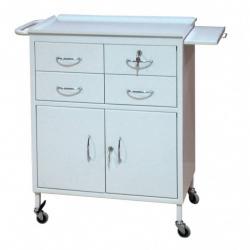 - Основание изготовлено из трубы квадратного сечения 20х20 мм, корпус и остальные элементы - из листового проката. - В корпусе имеются 4 выдвижных ящика, один из которых с замком. - Имеются 2 столешницы одна из которых выдвижная. - Столик установлен на колеса d 50 мм, имеется ручка для удобства перемещения. - Все металлические поверхности имеют полимерно-порошковое покрытие. - Стол анестезиолога поставляется в собранном виде. - Продукция имеет Регистрационное Удостоверение Росздравнадзора и Сертификат соответствия.