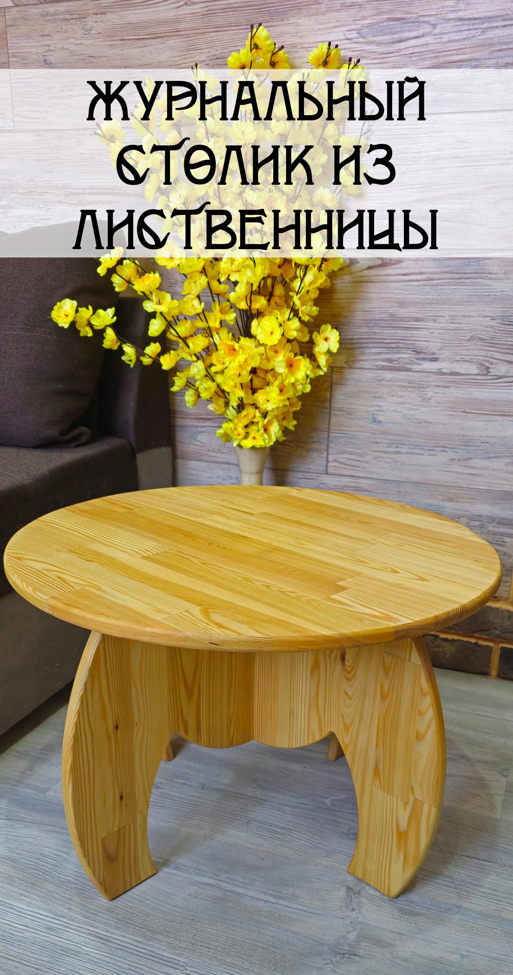 Столешница и ножки выполнены из массива лиственницы, покрытого маслом. Это придает изделию прочность, долговечность и красивый внешний вид.