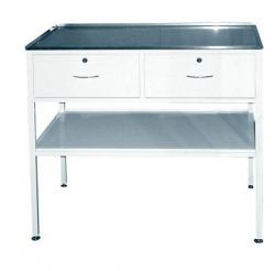 - Основание процедурного стола выполнено из трубы квадратного сечения. - Корпус – из листового проката. - В верхней части два выдвижных ящика с замками, в нижней - полка. - Столешница выполнена из нержавеющей стали и закреплена на каркасе заклепками. - Столик для процедурного кабинета (анестезиолога) установлен на 4 регулируемые опоры. - Все металлические поверхности имеют полимерно-порошковое покрытие. - Стол медицинский манипуляционный с ящиком для хранения стерильных инструментов поставляется в собранном виде.
