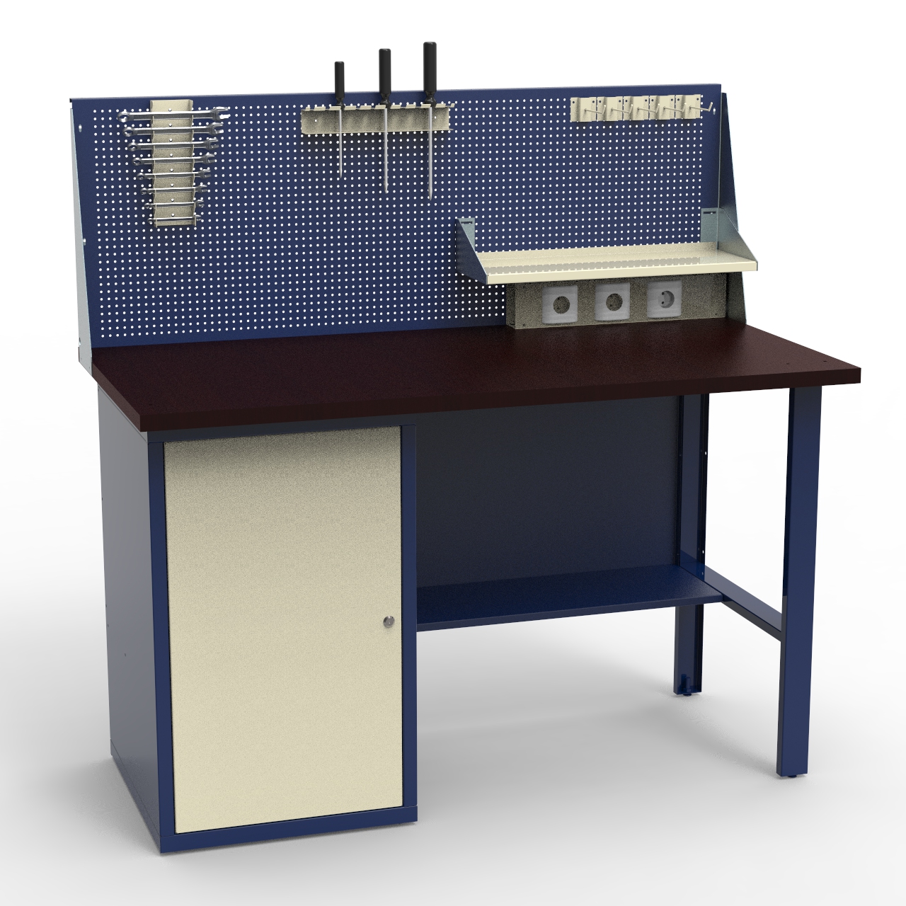Купить верстак с одной тумбой и дополнительным обвесом предлагает наш интернет-магазин. Для популярной серии СВФ характерны следующие характеристики: продуманная конструкция, насыщенная оснастка, высокая эстетика промышленного дизайна, оптимальная стоимость рабочего стола - выходит реально дёшево. Многофункциональная и эргономичная модель СВФ-1Т.01.00.14_сб1 востребована в малом и среднем бизнесе.