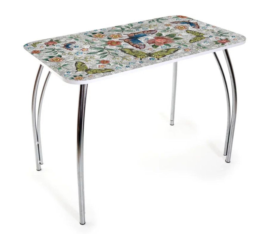 Стол обеденный БИТЕЛ ЛИЛИЯ (Нога СЕРЕБРО-Окрас) Столешница БАБОЧКИ