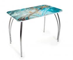 Стол обеденный БИТЕЛ ЛИЛИЯ (Нога СЕРЕБРО-Окрас) Столешница ЛАЗУРЬ