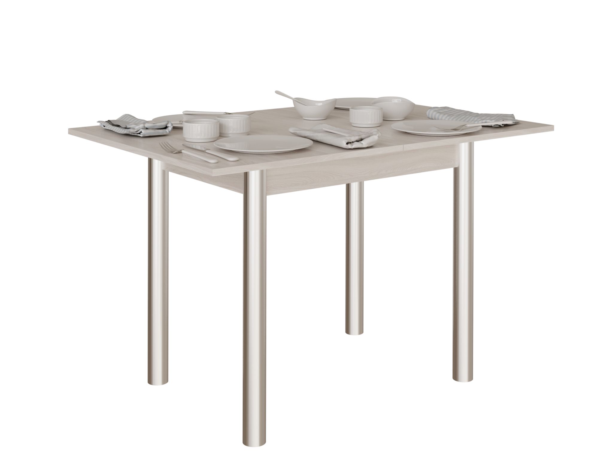 Стол обеденный МЕБЕЛЬ-КОМПЛЕКС СО-06 Ясень Шимо светлый, на ногах из хромированной трубы d=50 мм, столешница – ЛДСП 16 мм