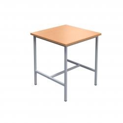 Существуют производственные ситуации, когда персоналу приходится принимать пищу в помещениях небольшой площади, например, в комнате студенческого общежития, вагончике вахтовиков, бытовке, помещении охранной организации и т.д. В этом случае, идеально подойдет модель обеденного стола небольших габаритов СДР-1/70/70У. Купить стол обеденный на металлических стойках недорого предлагает наш интернет-магазин. Литера «У» в названии, указывает, что конструкция «усиленная» - производитель дополнительно соединил ножки-стойки поперечными балками.