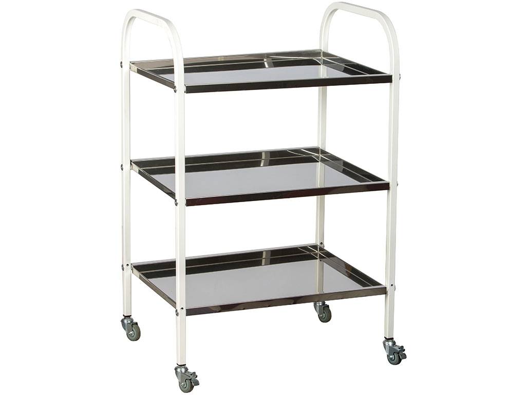 - Поверхность столика устойчива к ударам, сколам, средствам дезинфекционной обработки способом протирания. - Столик процедурный имеет 4 колеса пластиковых D= 40 мм, два из которых снабжены тормозом. - Поставляются в разобранном виде. Каркас столика изготовлен из изготовлен из профильной трубы квадратного сечения. 20х20х1, 5 мм, покрытой эпоксидно-порошковой краской.
