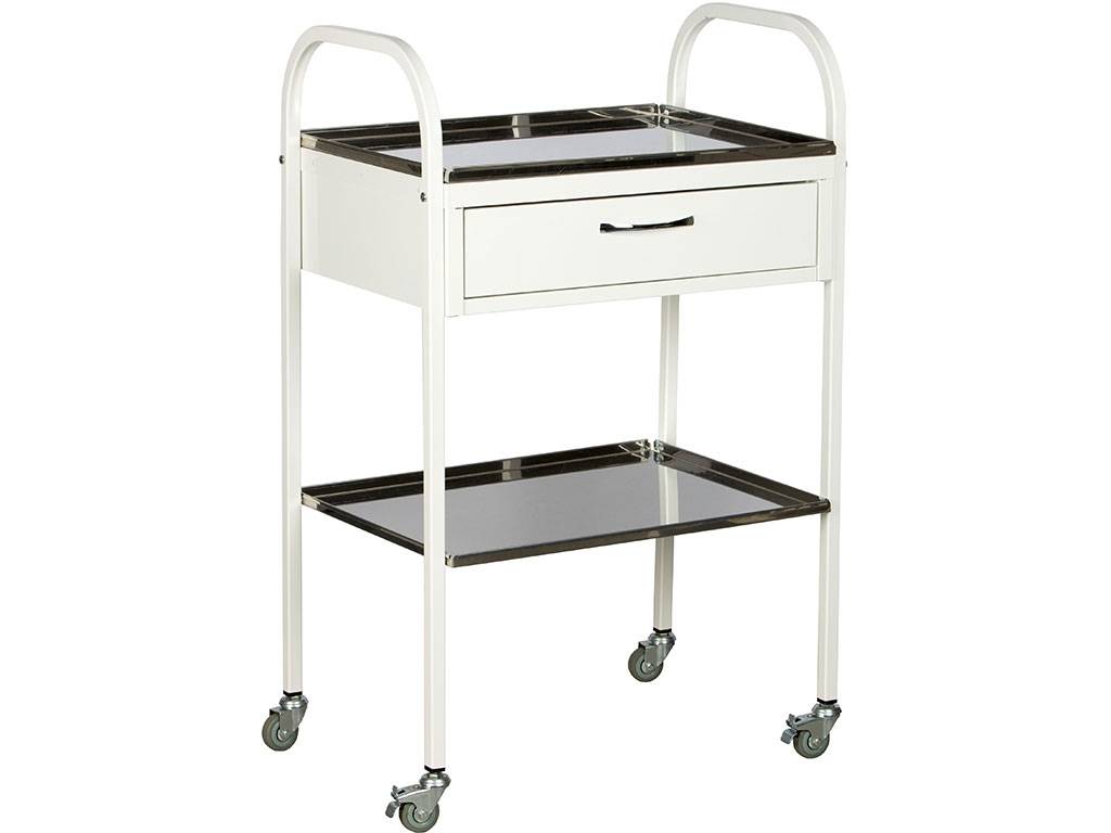 - Предназначен для размещения инструмента, лекарственных препаратов и приборов. - Каркас столика изготовлен из профильной трубы квадратного сечения. 20х20х1, 5 мм, покрытой эпоксидно-порошковой краской. - Полки изготовлены из нержавеющей стали 0,8 мм. - Поверхность столика устойчива к ударам, сколам, средствам дезинфекционной обработки способом протирания. - Столик манипуляционный имеет 4 колеса из не маркой серой резины D= 50 мм, два из которых снабжены тормозом. - Нагрузка на полку - не более 10 кг. - Нагрузка на ящик - не более 15 кг. - Поставляется в разобранном виде.