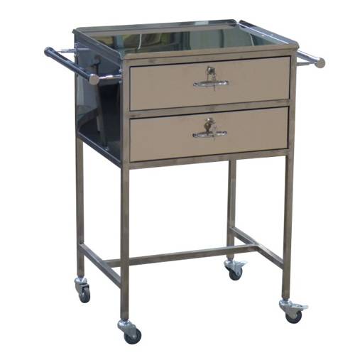Имеется 2 выдвижных ящика с замками. Столик установлен на колеса d 50 мм, два из которых с тормозом. С торцов имеются 2 ручки для удобства перемещения. Материал - нержавеющая сталь AISI 304. Столик поставляется в собранном виде.