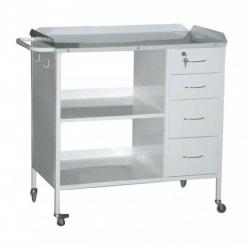 В правой части 4 выдвижных ящика, в левой 2 полки. Столешница приварена к каркасу. Столик установлен на колеса d 50 мм, два из которых с тормозом. С торца столика ручка для удобства передвижения. Все металлические поверхности имеют полимерно-порошковое покрытие.Столик поставляется в собранном виде.