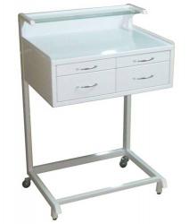 - Каркас выполнен из труб квадратного и прямоугольного сечения. - Столешница, полки и ящики из листового проката. - Над столешницей расположена надстройка со стеклянной полкой. - 2 ящика служат для хранения медикаментов. - Столешница и 2 выдвижных полки – для приготовления необходимых составов. - Столик врача стоматолога установлен на 2 колеса d 50 мм на задних ножках и 2 регулируемые опоры на передних. - Все металлические поверхности имеют полимерно-порошковое покрытие. - Столик стоматологический поставляется в собранном виде. - Продукция имеет Регистрационное Удостоверение Росздравнадзора и Сертификат соответствия.