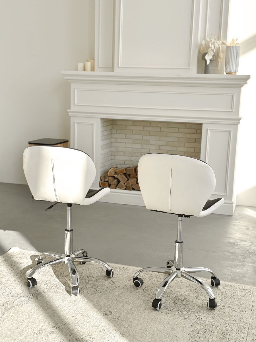 Стул на колесах с регулировкой высоты модель Ракушка универсальное решение для домашней обстановки спальни или гостиной, офисного пространства, зоны отдыха, рабочего школьного кабинета мальчика или девочки, студента, для столовой или кухни, а также подойдет к комплекту корпусной мебели в стиле популярной шведской марки. Модель кухонного стула универсальная - идеально смотрится с туалетным столиком или письменным компьютерным столом в детской комнате, украсит обеденную зону квартиры, лаконично впишется на даче или балконе. Классический стул можно поставить за стол в рабочий кабинет в офисе с компьютером, в зал кафе или бара для посетителей как барный или полубарный, или в парикмахерской для прихожей зоны ожидания мастера около зеркала, а также дополнить игровую геймерскую зону таким удобным компьютерным мягким креслом. В комплекте 2 стула.
