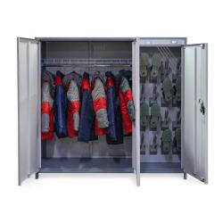 Сушильный шкаф для одежды и обуви RANGER 8 позволяет высушивать спецодежду, белье, головные уборы и обувь одновременно для восьми работников. Это очень удобно для рабочей смены строителей, монтажников, пожарных и т.д. Заступая на дежурство или выходя на работу, бригада получает комфортную робу и сухие ботинки. Предложенная металлическая мебель состоит из двух независимых отделений, которые можно использовать, как вместе, так и поочередно. Один отсек предназначен для одежды и головных уборов – оборудован решетчатой полкой и штангой для тремпелей. Второй отсек имеет шестнадцать парубков для навешивания рабочей обуви. Для каждого отделения имеется свой тангенциальный вентилятор. Максимальная температура нагрева воздуха до 60 град.С. Сушка может быть, как с подогревом, так и без включения тэна (режим сушка без нагрева). Перфорированный потолок с двумя фланцами 120 или 125 мм для подключения вытяжки. Купить шкафы для сушки одежды и обуви RANGER 8 можно в нашем интернет-магазине. Стоимость мебели металлической всегда оптимальная для вашего региона, т.к. наша торговая площадка напрямую сотрудничает с производителями. Изделие отправляется в разобранном виде, упакованное в гофрокартон и целлофановую пленку плюс крепежные элементы.