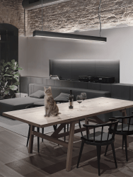 Ну очень мощный подвесной линейный светильник, позволяющий ярко осветить достаточно большое пространство. Идеально впишется в интерьер помещений с высокими потолками, где хочется акцентировать внимание даже на мельчайших деталях. К примеру, прекрасно такой светильник подойдёт для входных групп жилых комплексов, длинных коридоров и масштабных производственных помещений.