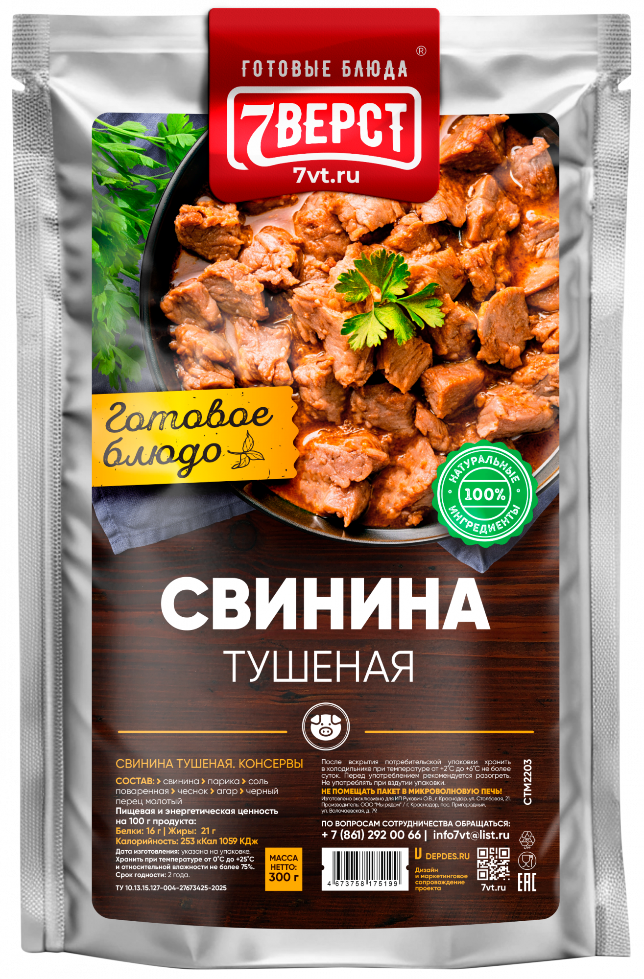 Состав: Свинина, парика, соль поваренная, чеснок, вода, черный перец молотый.