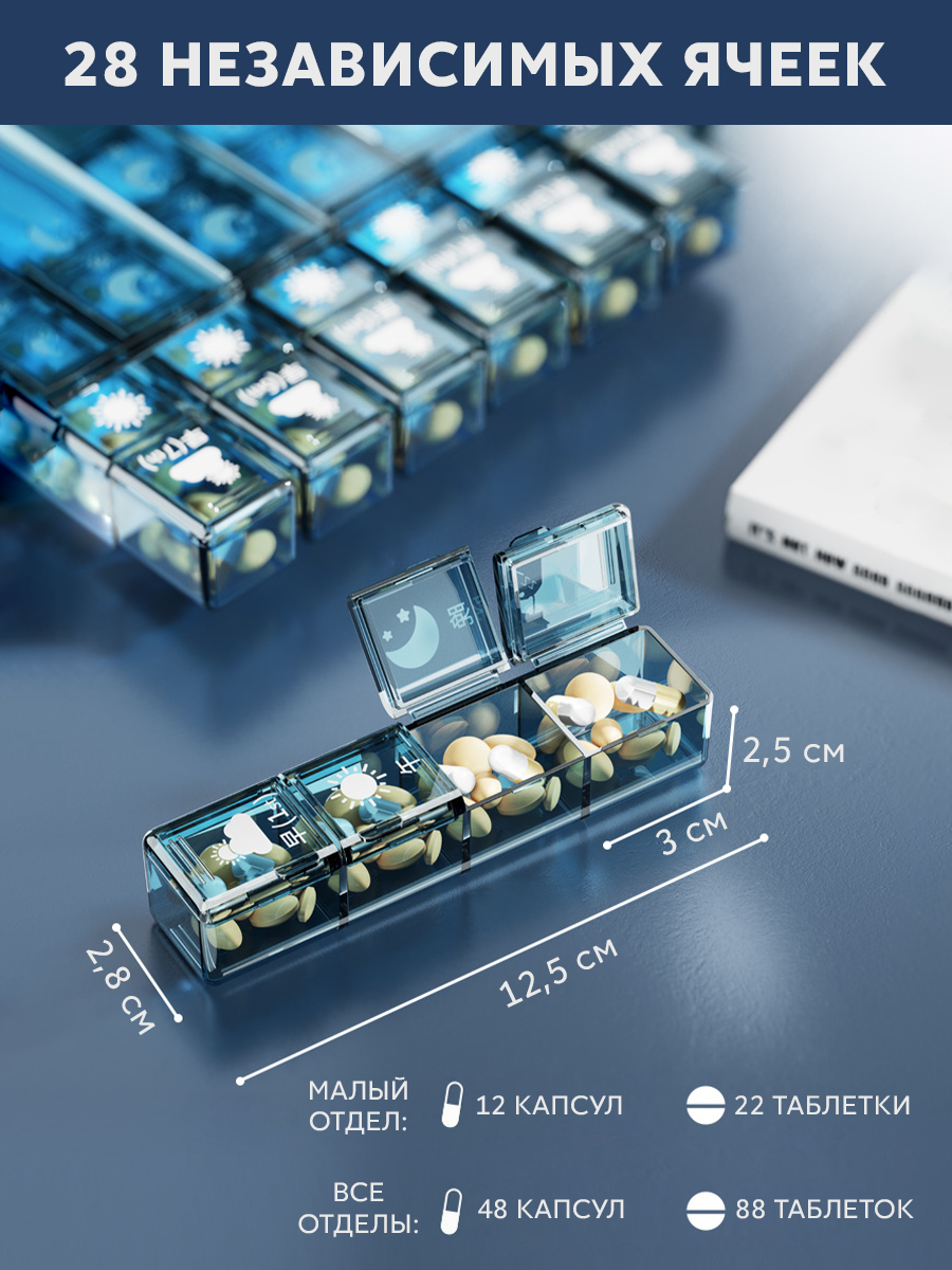 В ДОРОГУ ИЛИ ПУТЕШЕСТВИЕ – разложите таблетки, капсулы, БАДы чтобы не забыть об ежедневном приеме лекарств.