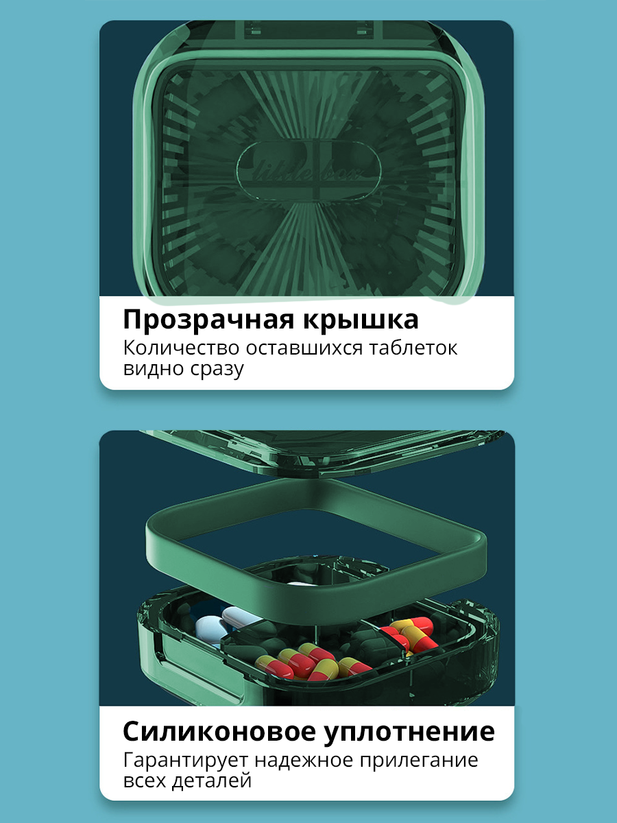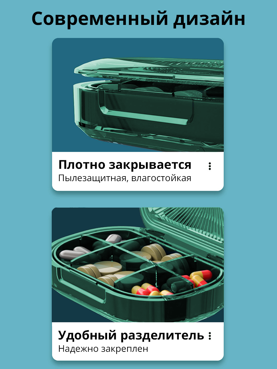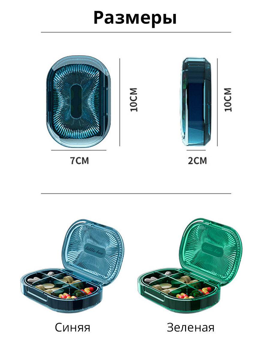 МИНИ ОРГАНАЙЗЕР – очень компактный, подойдет для самой маленькой сумки или в карман джинс, при этом отделения достаточно большие для хранения ежедневного приема лекарств.