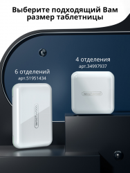 ВМЕСТИТЕЛЬНАЯ - набор рассчитан на день (утро, обед, вечер, ночь) или неделю. Каждая ячейка вмещает от 3 до 6 таблеток.