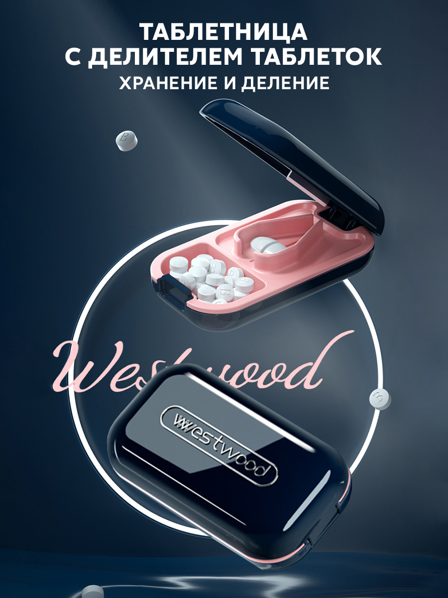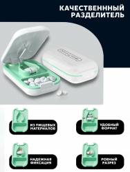 ТАБЛЕТНИЦА С РАЗМЕЛЬЧИТЕЛЕМ - коробка для таблеток имеет острый измельчитель. Любую пилюлю можно разделить таблеторезкой на 2 или 4 части, нож не крошит.