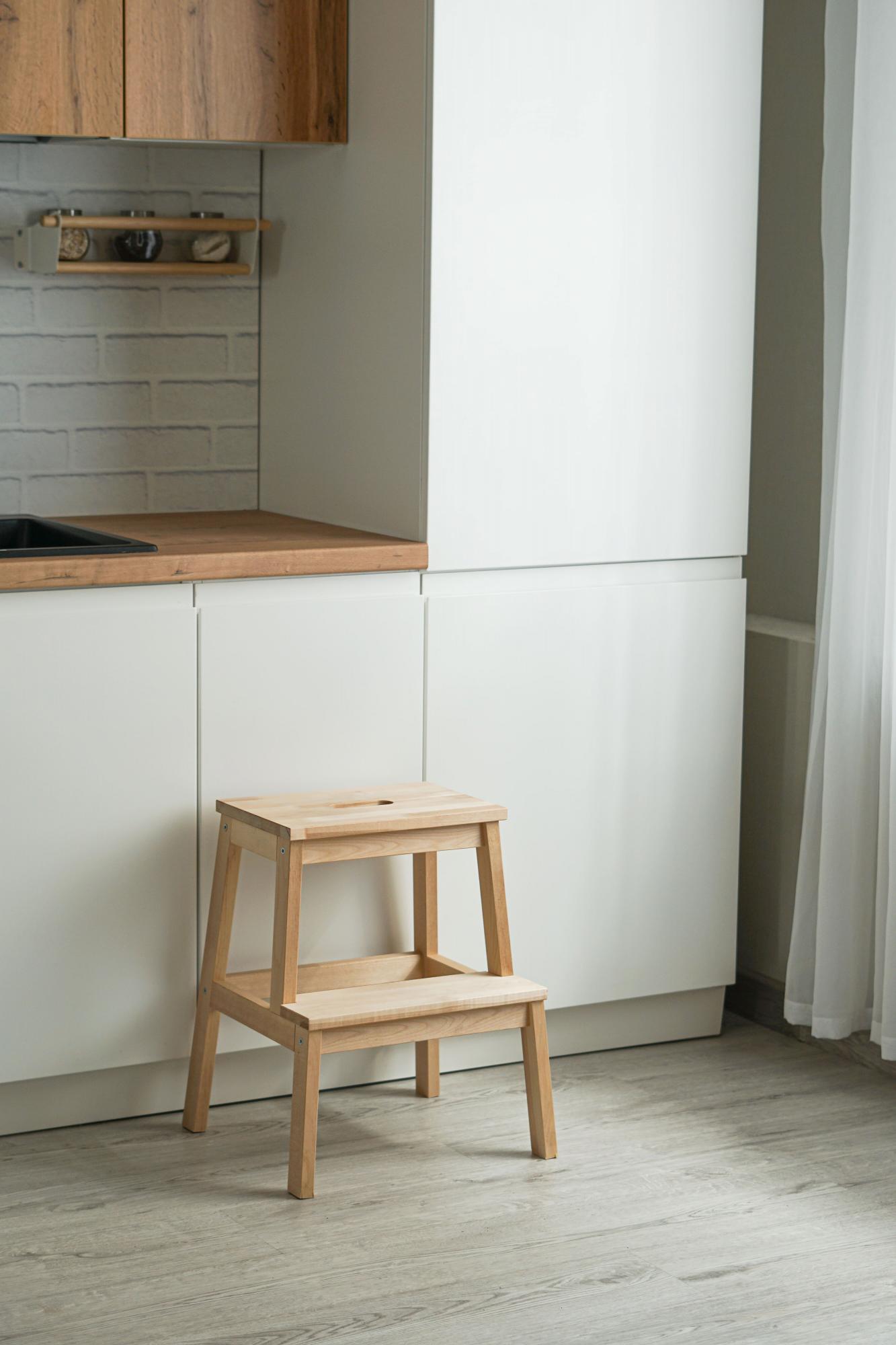 Представляем вашему вниманию деревянный табурет-лестницу, который станет незаменимым помощником в вашем доме. Этот функциональный предмет мебели сочетает в себе стильный дизайн и практичность.
