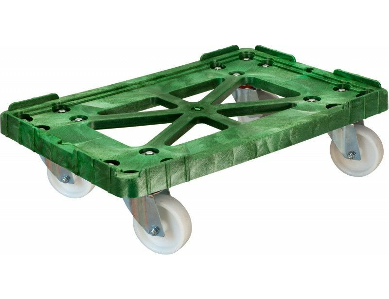 Тележка пластиковая под ящики — T-508-1 з, зеленый, п/э 600х400 полиамидные колеса