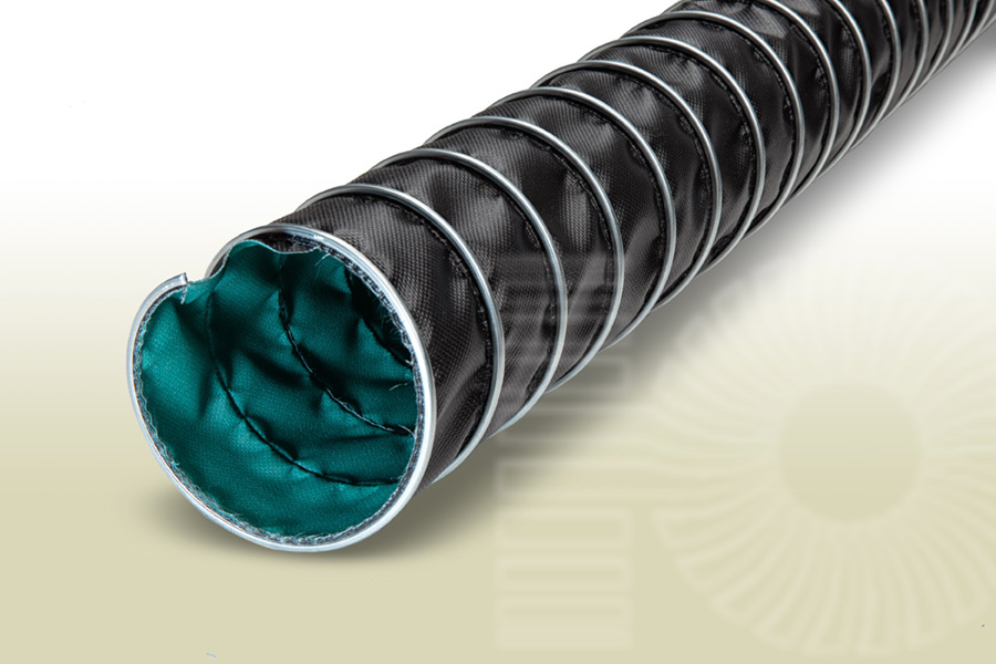 Силикон. Силиконовый высокотемпературный воздуховод применяется в авиационной и оборонной промышленности, устойчив к воздействию ультрафиолета, химических сред и т.д. Рабочая температура – от -60 до +300 градусов.