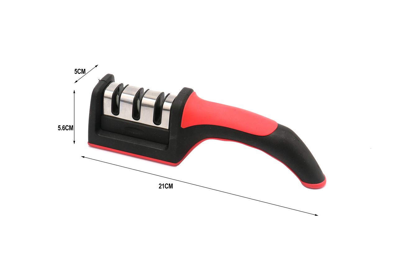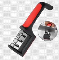 Точилка для ножей – это отличный инструмент для заточки ножей (универсальных, столовых, поварских, овощных, охотничьих, складных, рыбацких, туристических). Ножеточка ручная наточит нож не хуже, чем электрическая точилка для ножей. Трёхзонная точилка для ножей будет полезна не только в домашнем хозяйстве, но и на офисной кухне или на даче. Точилка пригодится и во время отдыха на природе. Наточить нож очень просто: необходимо лишь поместить лезвие в слот остриём вниз, а затем провести несколько раз по направлению к себе. Корпус заточки для ножей выполнен из приятного на ощупь пластика и имеет удобную эргономичную ручку с удобным хватом для руки. Прорезиненные вставки в основании не позволяют прибору скользить по столу и другим поверхностям. Главным преимуществом точилки для ножей является наличие 3 слотов для трёх этапов заточки:1. Грубая.2. Чистовая.3. Финишная. Трехуровневая заточка полотна лезвия позволяет продлить его срок службы.