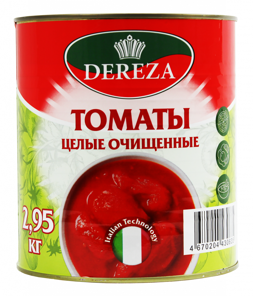 В сравнении с конкурентами банка томатов ДЕРЕЗА имеет выверенный размер 2,95 кг для оптимизации логистики и содержит больше плодов томатов, 60% против 50%.