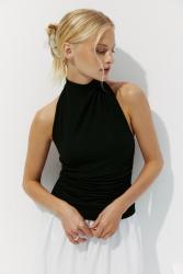Женственный топ облегающего силуэта. Особенным акцентом модели является высокая аккуратная горловина. Топ дополнен драпировкой по бокам, которая подчеркивает линии талии, делая силуэт более выразительным. Для пошива изделия был выбран мягкий вискозный трикотаж.
