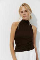 Женственный топ облегающего силуэта. Особенным акцентом модели является высокая аккуратная горловина. Топ дополнен драпировкой по бокам, которая подчеркивает линии талии, делая силуэт более выразительным. Для пошива изделия был выбран мягкий вискозный трикотаж.