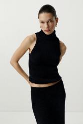 Топ с воротником-стойкой из пушистой пряжи (черный)