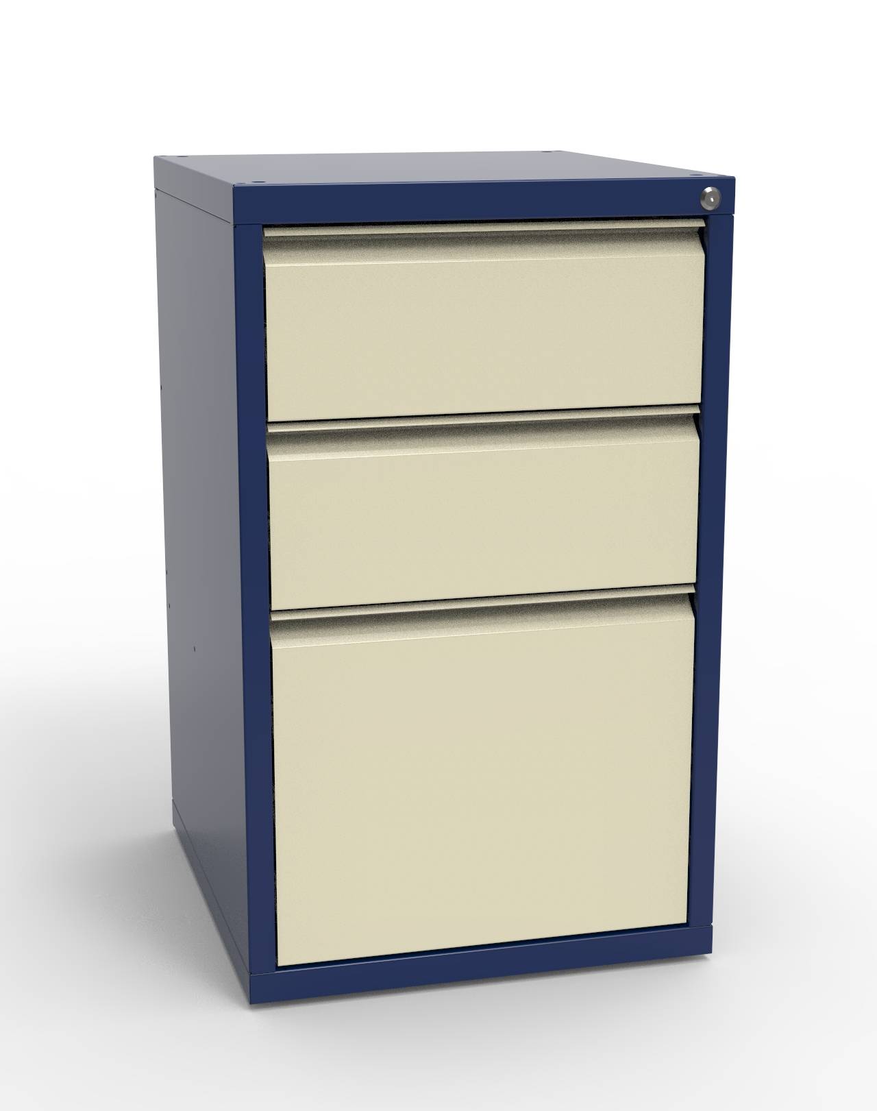 - Тумба с 3-я выдвижными ящиками на шариковых телескопических направляющих:- ящик большой (360х379х525 мм) - 1 шт.;- ящик средний (180х379х525 мм) - 2 шт.Возможна комплектация оцинкованной столешницей.