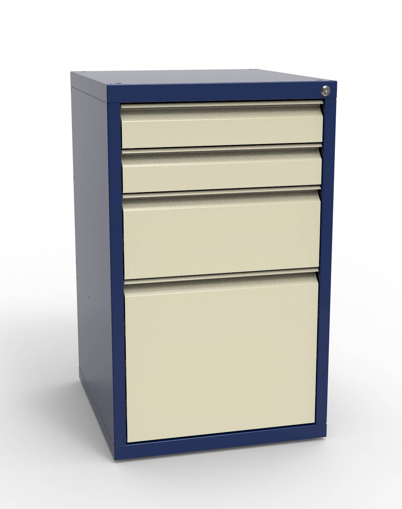 - Тумба с 4-я выдвижными ящиками на шариковых телескопических направляющих:- ящик большой (360х379х525 мм) - 1 шт.;- ящик средний (180х379х525 мм) - 1 шт.- ящик малый (90х379х525 мм) - 2 шт.Возможна комплектация оцинкованной столешницей.