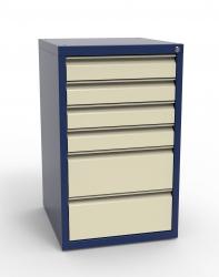 - Тумба с 6-ю выдвижными ящиками на шариковых телескопических направляющих:- ящик средний (180х379х525 мм) - 2 шт.- ящик малый (90х379х525 мм) - 4 шт.Возможна комплектация оцинкованной столешницей.