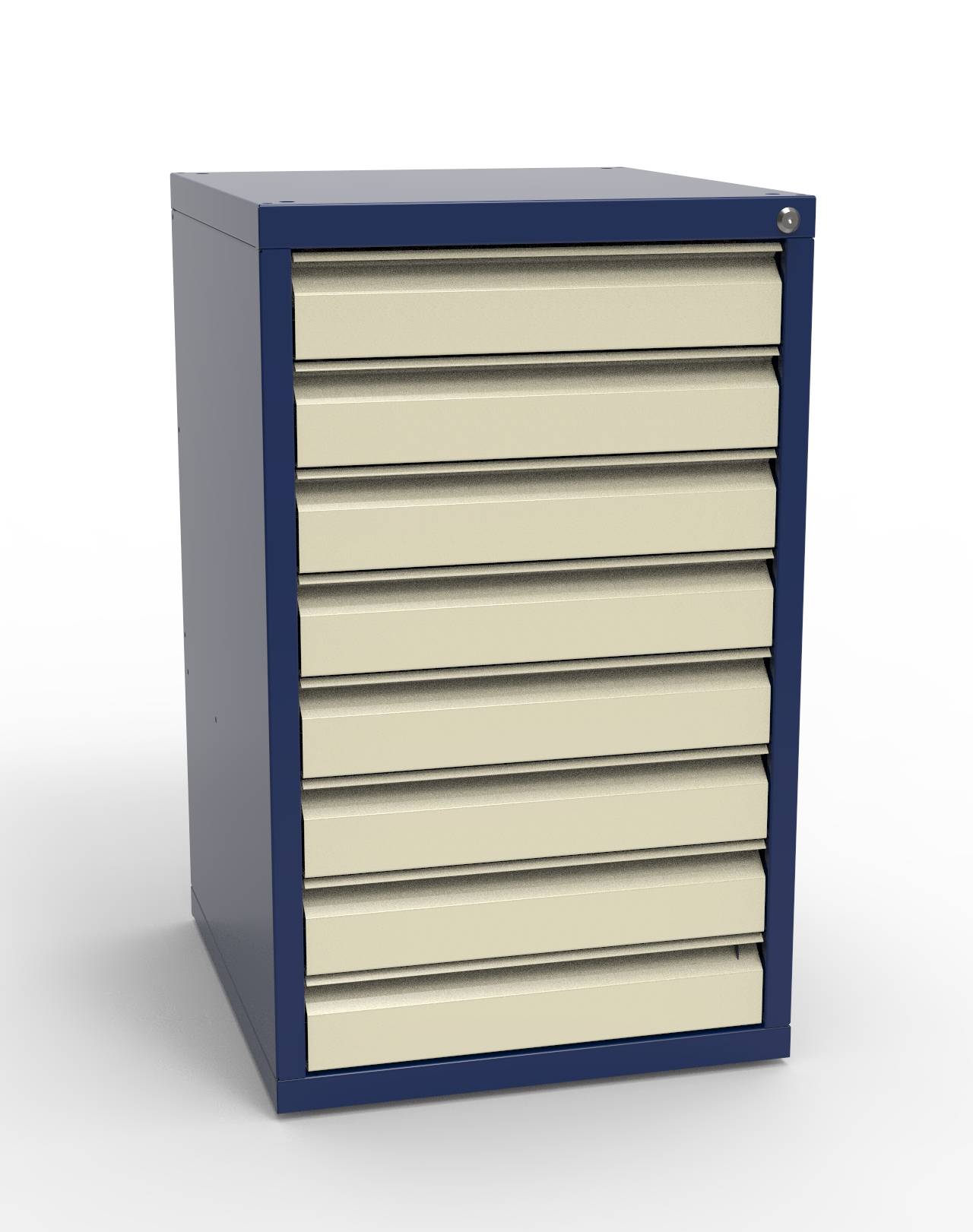 - Тумба с 8-ю выдвижными ящиками на шариковых телескопических направляющих:- ящик малый (90х379х525 мм) - 8 шт.Возможна комплектация оцинкованной столешницей.