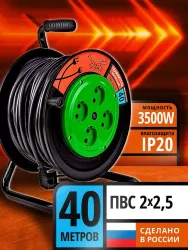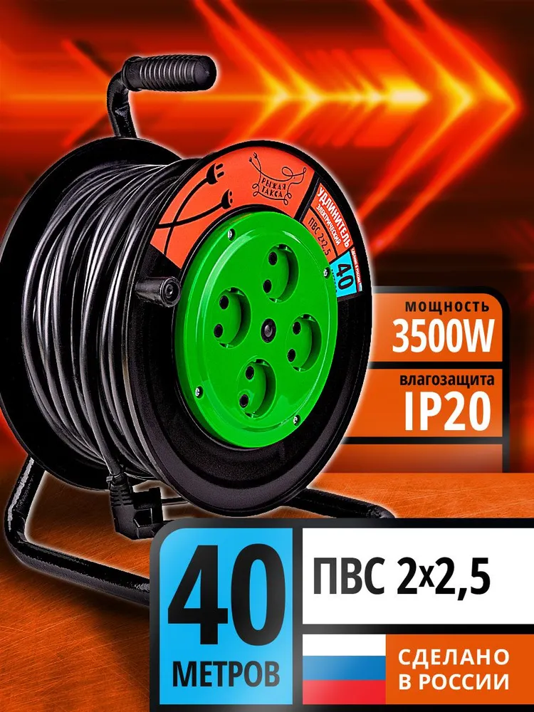 Удлинитель силовой РЫЖАЯ ТАКСА УКП04-2714 на пластиковой катушке без заземления с проводом ПВС 2*2,5 предназначен для подключения электроприборов на расстоянии до 40 метров от стационарного источника питания. Модель оснащена четырьмя розетками, что позволяет одновременно подключать несколько устройств, суммарная мощность которых не превышает 3500 Вт.