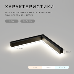 Угловой универсальный светодиодный светильник, 540*540*50 мм, 5000 К, 36 W