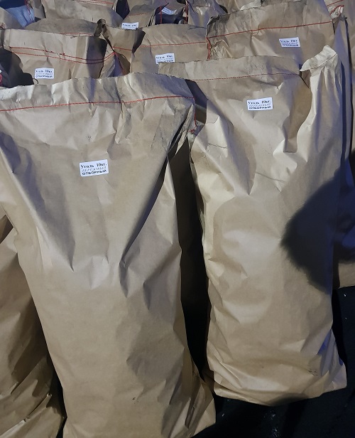 Уголь березовый, сухой, вес в мешке соответствует (каждый мешок ставится на весы)