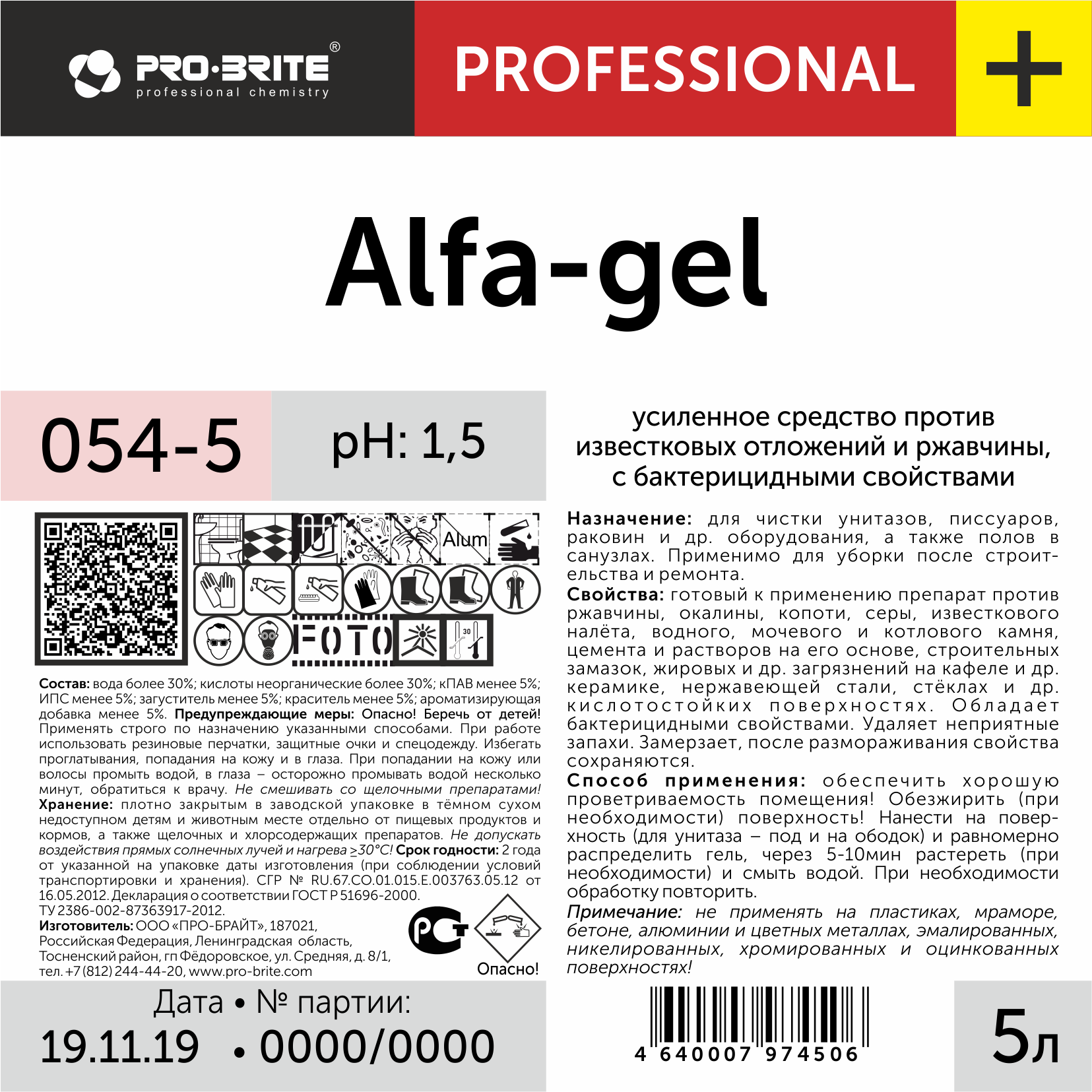 Состав: вода; кислоты; загуститель; ИПС; ПАВ; краситель; ароматизатор.