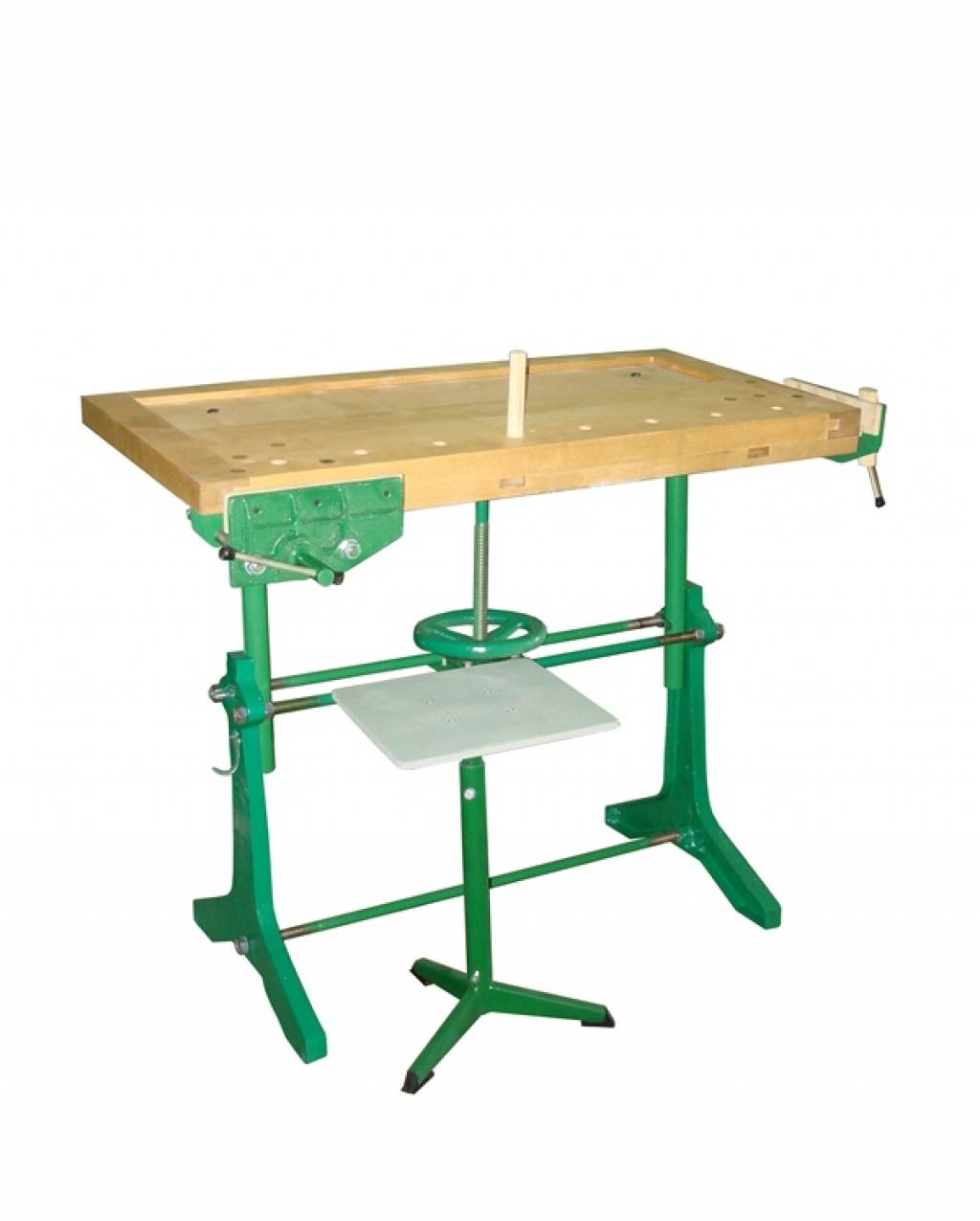 - На чугунном основании наличие винтовой пары (винта подъема) позволяет одному человеку без применения дополнительных инструментов быстро и бесступенчато устанавливать столешницу на необходимую для работы высоту.