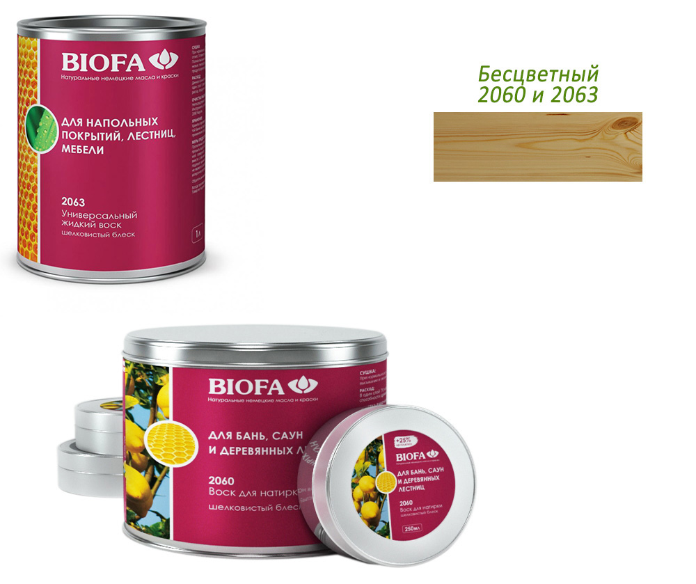 Воск для сауны и бани biofa биофа для натирки 2060 применяется в покрытии стен, потолков, мест сидения и лежания в банях и саунах, которые подвержены частичному воздействию влаги, а также повышенных температур.