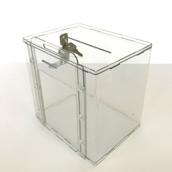 Конструкция ящика для пожертвований выполнена с учетом максимальной безопасности для содержимого, а сам материал характеризуется антивандальными свойствами. Прозрачность материала привлечет желающих участвовать в проводимой вами акции и благотворительности.