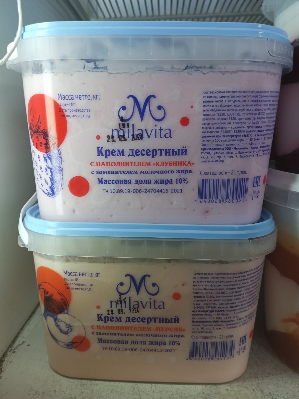 Продукт молокосодержащий с заменителем молочного жира м.д.ж. 10% с наполнителем: банан, вишня, груша, злаки, киви, клубника, малина, манго, персик