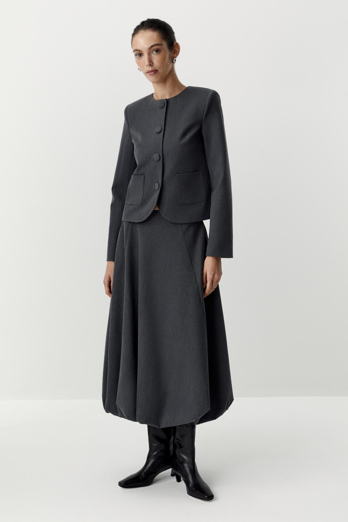 Юбка-баллон миди с высокой посадкой - стильная новинка сезона. Объемный пышный низ идеально делает образ женственным и элегантным. Изделие имеет потайную молнию, боковые карманы и подкладку для более комфортной носки. Юбка выполнена из плотной ткани с добавлением вискозы.
