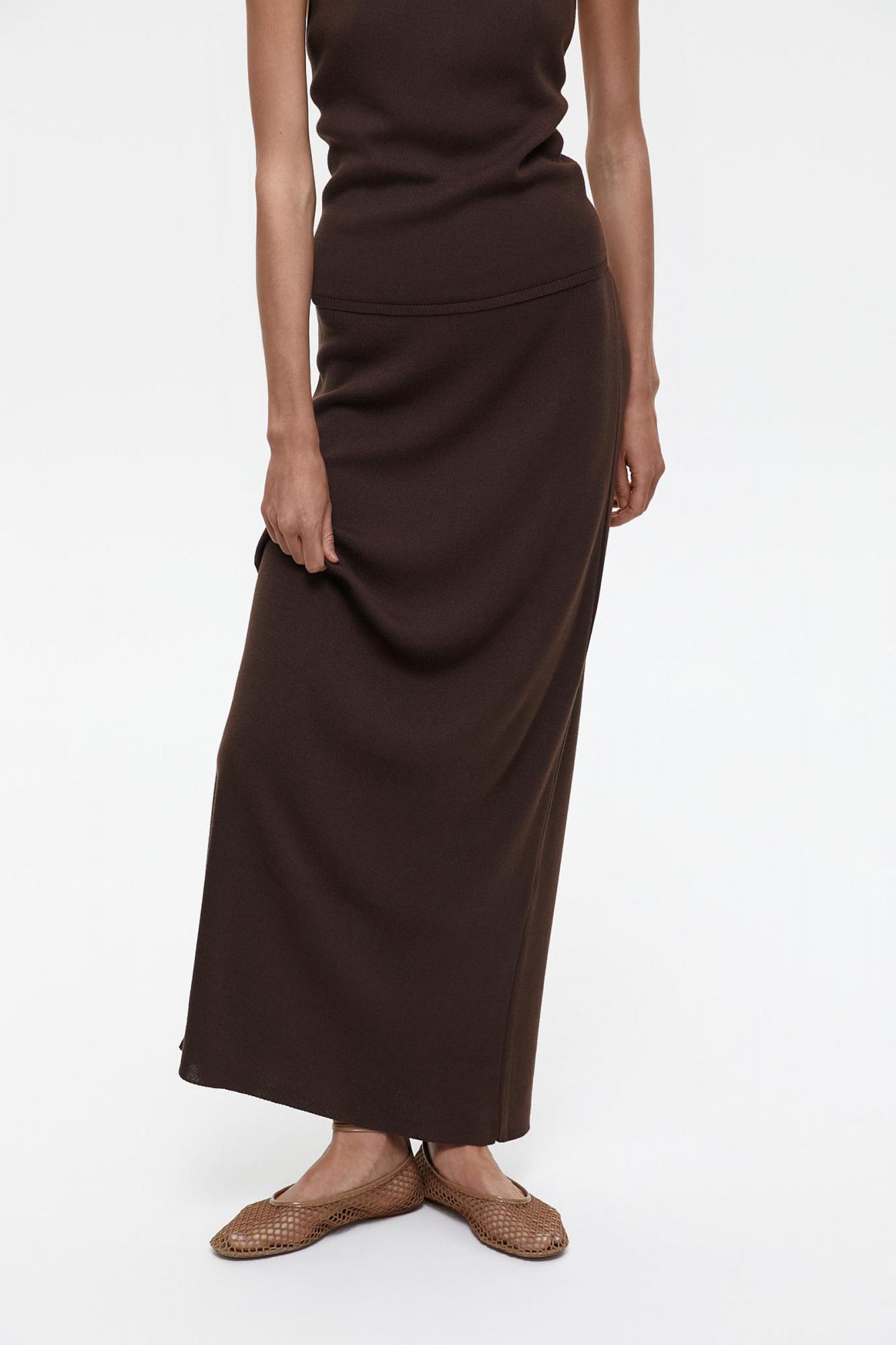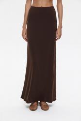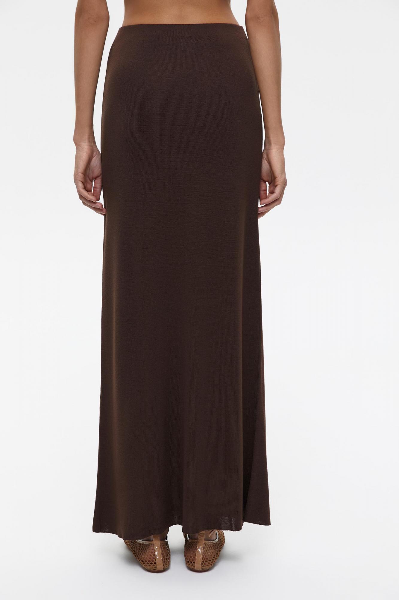 Вязаная юбка прямого кроя в длине макси. Юбка дополнена резинкой по поясу, который обеспечивает комфортную посадку на талии. Силуэт модели красиво струится по линии бедер и удобен в носке.