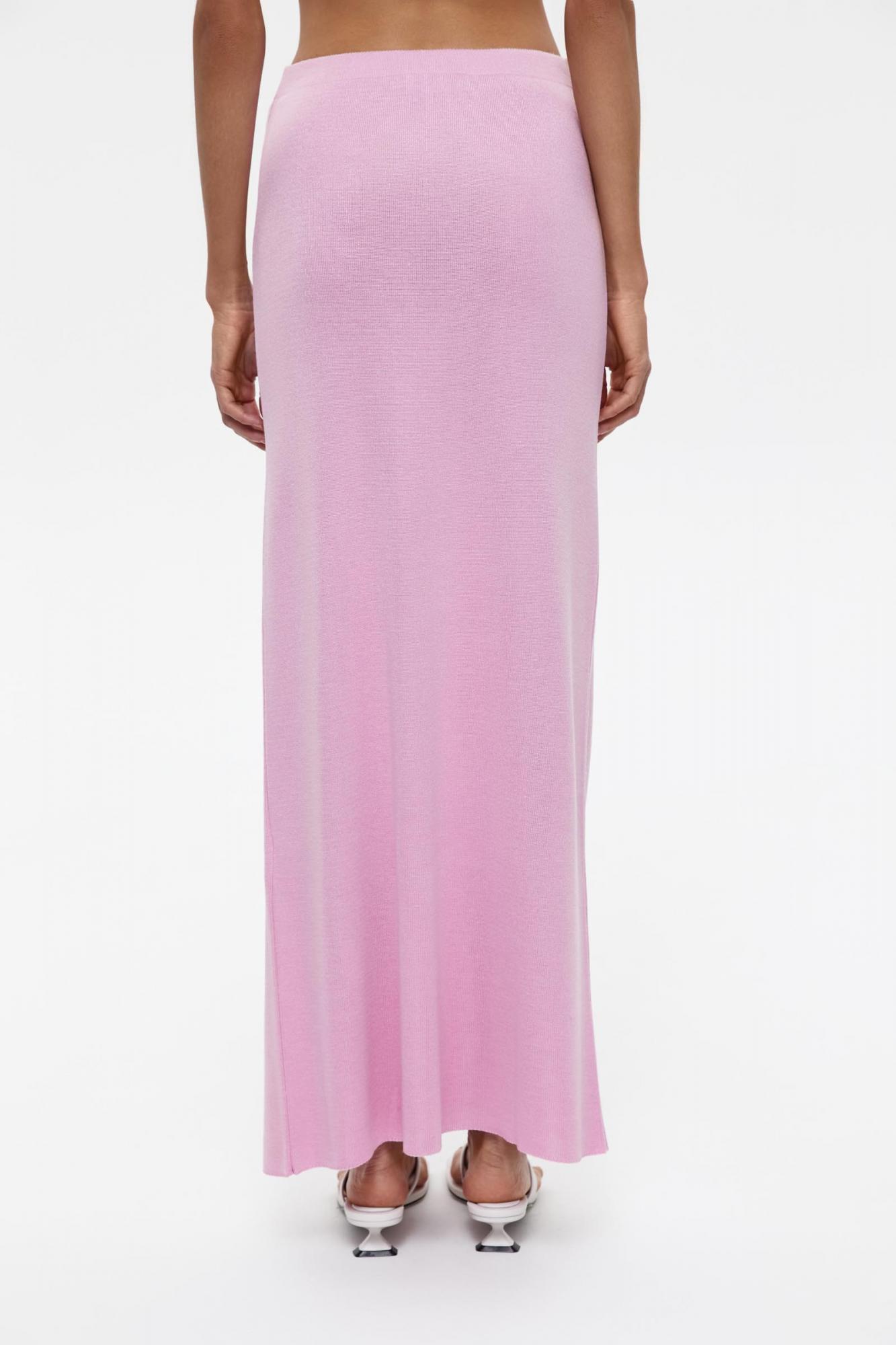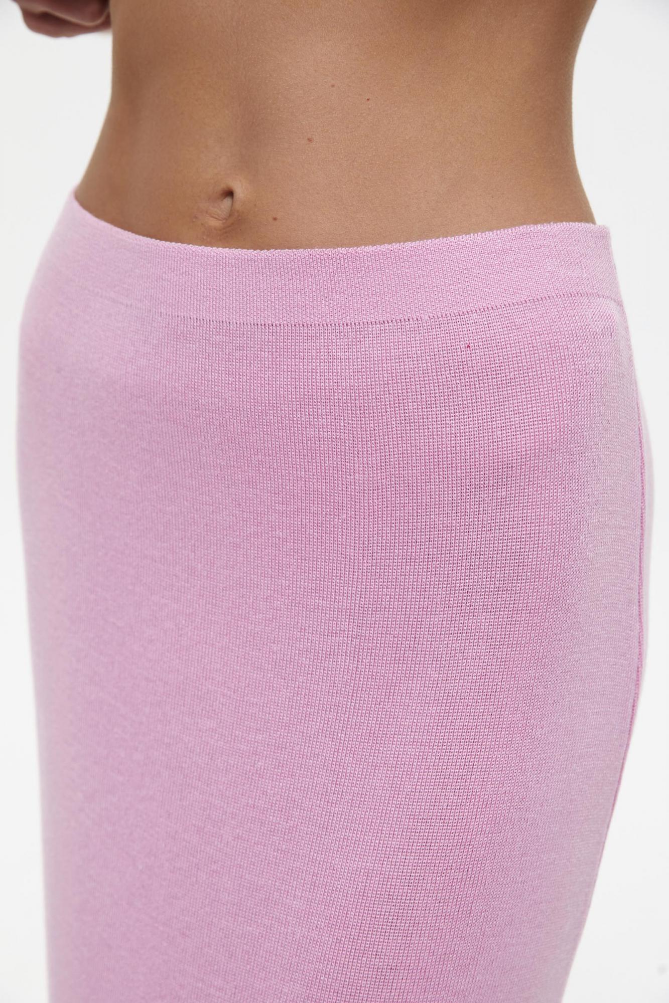 Вязаная юбка прямого кроя в длине макси. Юбка дополнена резинкой по поясу, который обеспечивает комфортную посадку на талии. Силуэт модели красиво струится по линии бедер и удобен в носке.