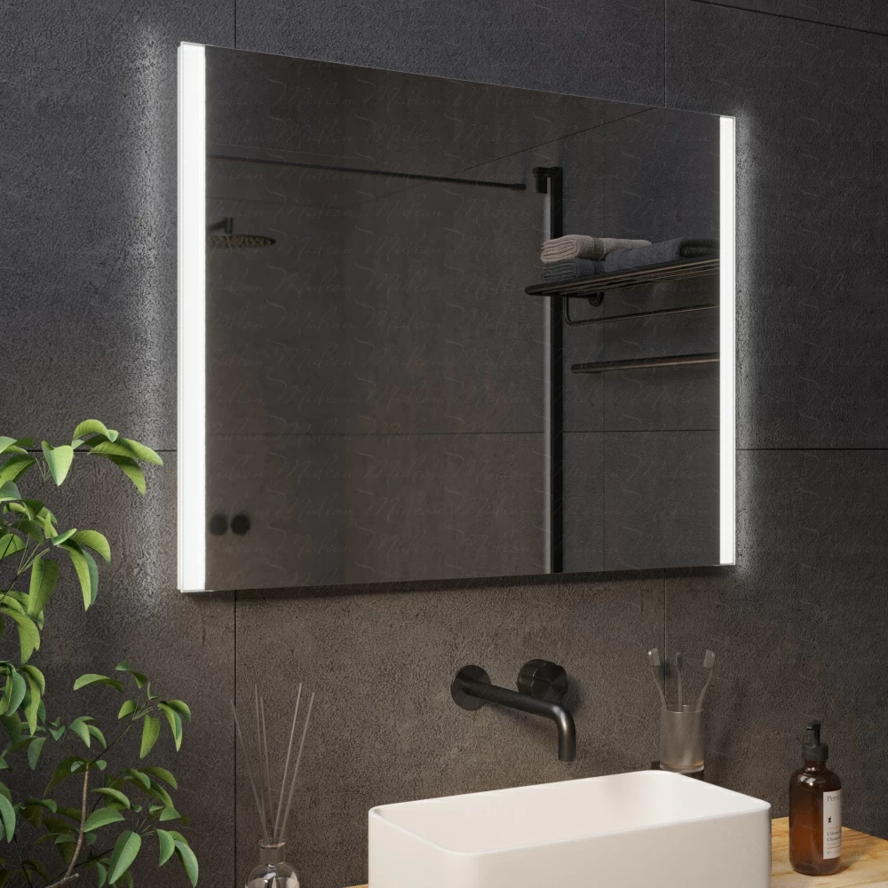 Зеркало оборудовано сенсорным выключателем со встроенным диммером (возможностью регулировать яркость подсветки). Выключатель имеет приятный белый цвет и не раздражает глаз (в отличии от синих выключателей).Зеркало имеет толщину всего 27 мм благодаря применению современной LED (светодиодной) подсветки, премиальных комплектующих и собственным производственным наработкам.