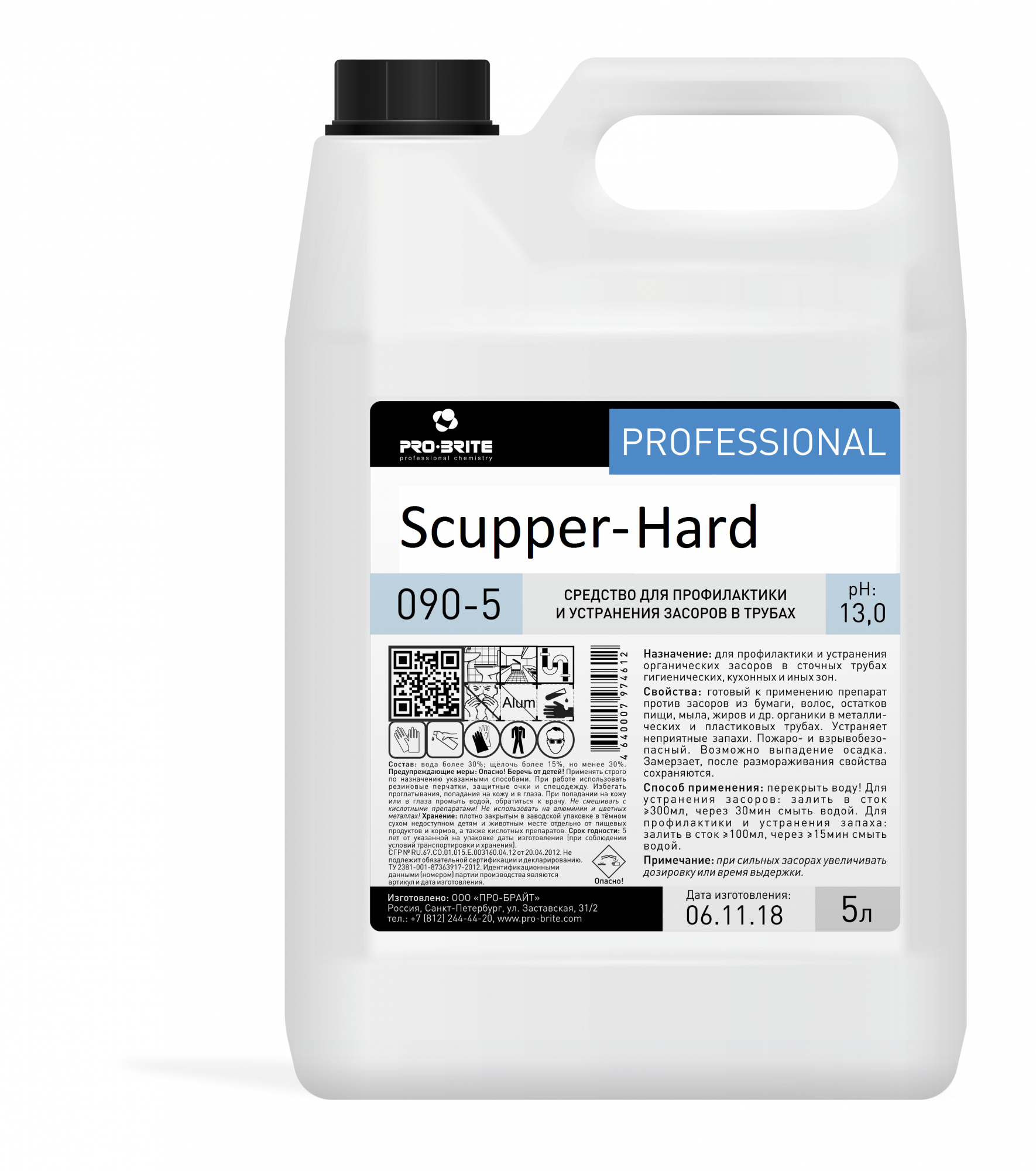 Свойства: жидкий сильнощелочной низкопенный готовый к применению препарат, против засоров из бумаги, волос, остатков пищи, мыла, жиров и пр. в металлических и пластиковых трубах. Устраняет неприятные запахи. Пожаро- и взрывобезопасный. Замерзает, после размораживания свойства сохраняются.